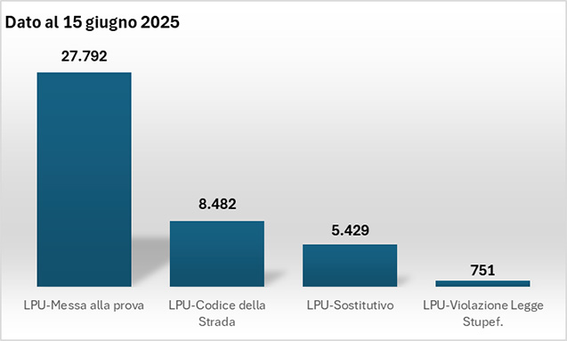 - sanzione prevista in caso di violazione del Codice della strada: 8.482 condannati in carico agli uepe al 15.06.2025